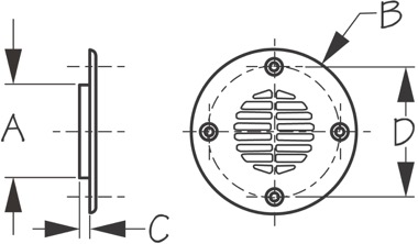 Black in stock. Designed to drain water from floors of bass, pontoon and other open deck boats. May also be used to vent lockers and refrigerator cabinets and also as a grille for enclosed horns and speakers. Note: Avoid contact with acetone or strong solvents.